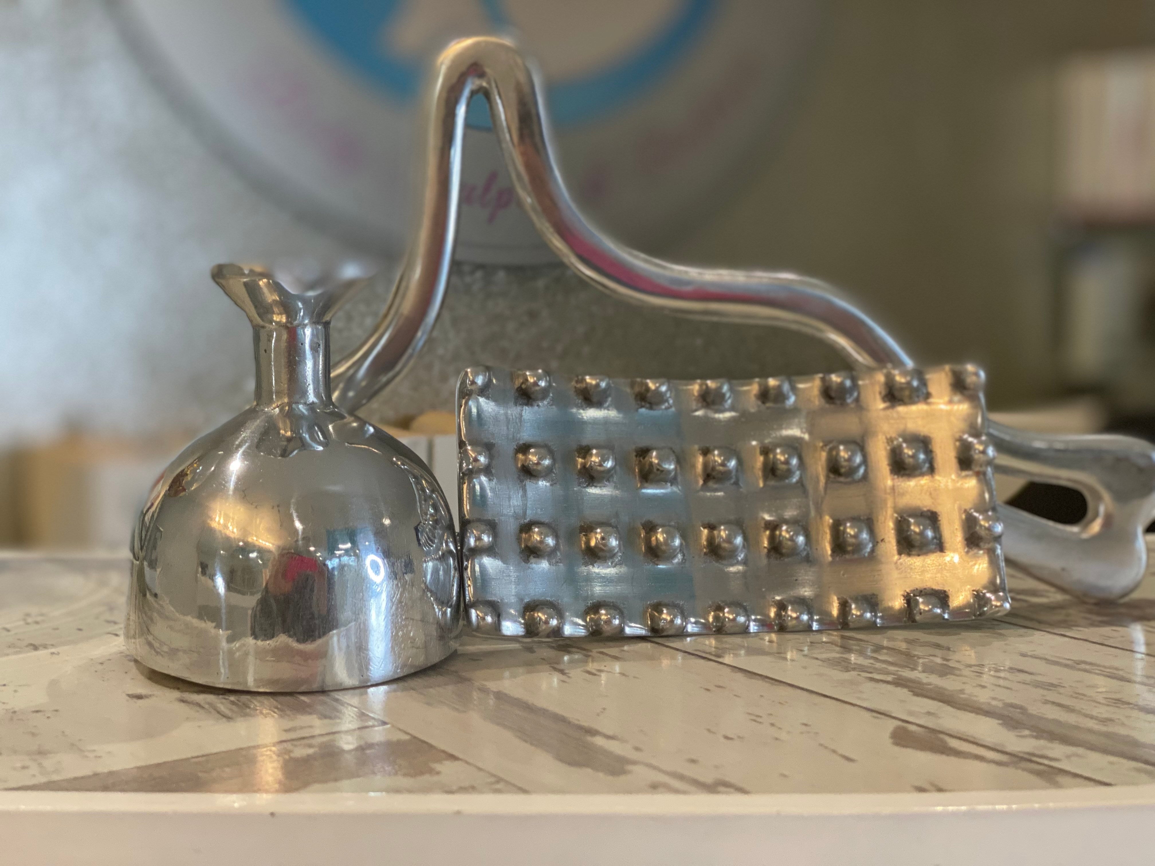 Made of different metals and aluminum. This piece is non-magnetic, silver-colored, long-lasting, and easy to clean. These pieces are polished, lightweight, and easy to use. This tool will help you to break down stubborn adipose tissue that you can drain after with the Swedish cup to bring a smothering sensation to the skin. Our metal Swiss cup is designed with a deeper suction to avoid skin damage and/or tissue; very effective to break down adipose tissue, cellulite; to tone, sculpt and drain through the lymphatic system, defines, and chiseling waistline and buttocks.